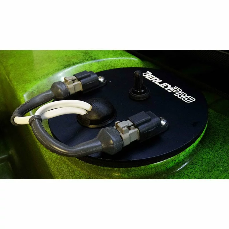 BerleyPro ORB Dimmer Switch is made from a 3d printed housing and a modified toggle switch which is then epoxy filled to remain waterproof. This comes with a waterproof boot and 10cm of wiring to splice into your light wiring in series.