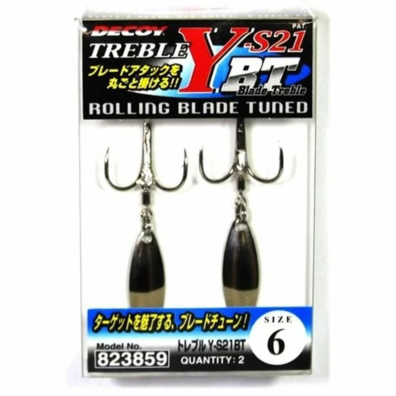 Decoy Y-S21 Blade Treble Hooks are a top-of-the-line replacement for stock treble hooks, their tuned blade design provides an eye catching flash that will make your crankbait, spoon or topwater stand out from all of the rest.