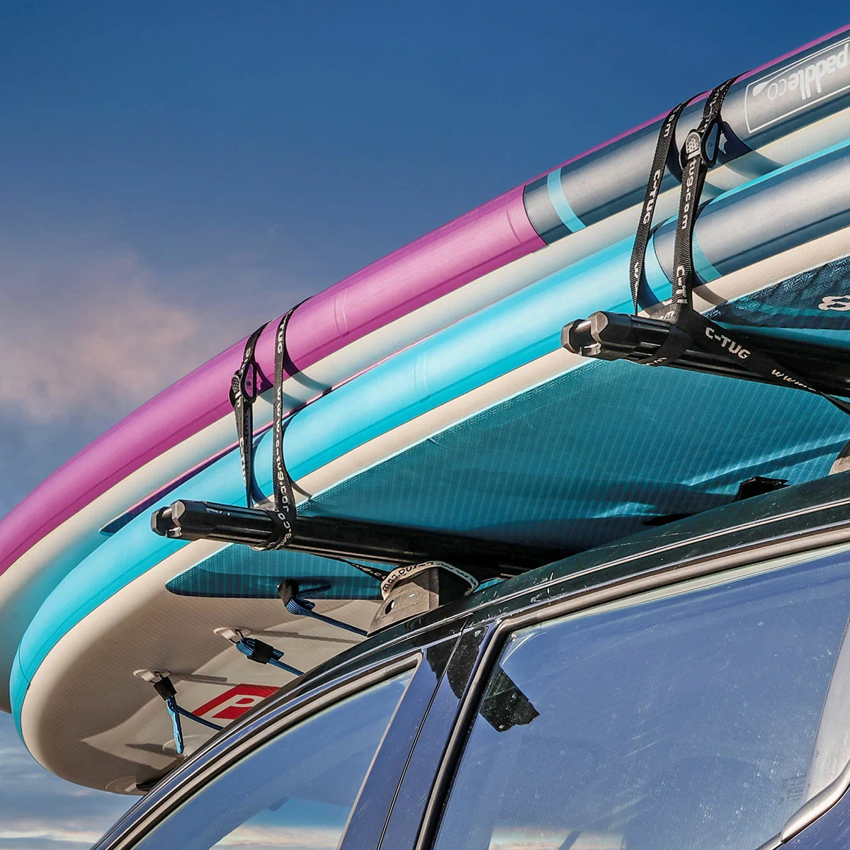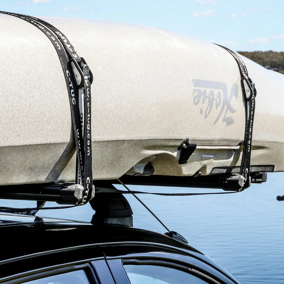 A pair high quality 15′ x 1″ (4.6m x 25mm) tie-downs to easily secure kayaks, SUP’s, surfboards, dinghies, and more to roof racks and trailers. Rubber-coated aluminum cam buckle to protect loads and vehicles. Ultra tough, durable and UV resistant polyester webbing made in New Zealand.