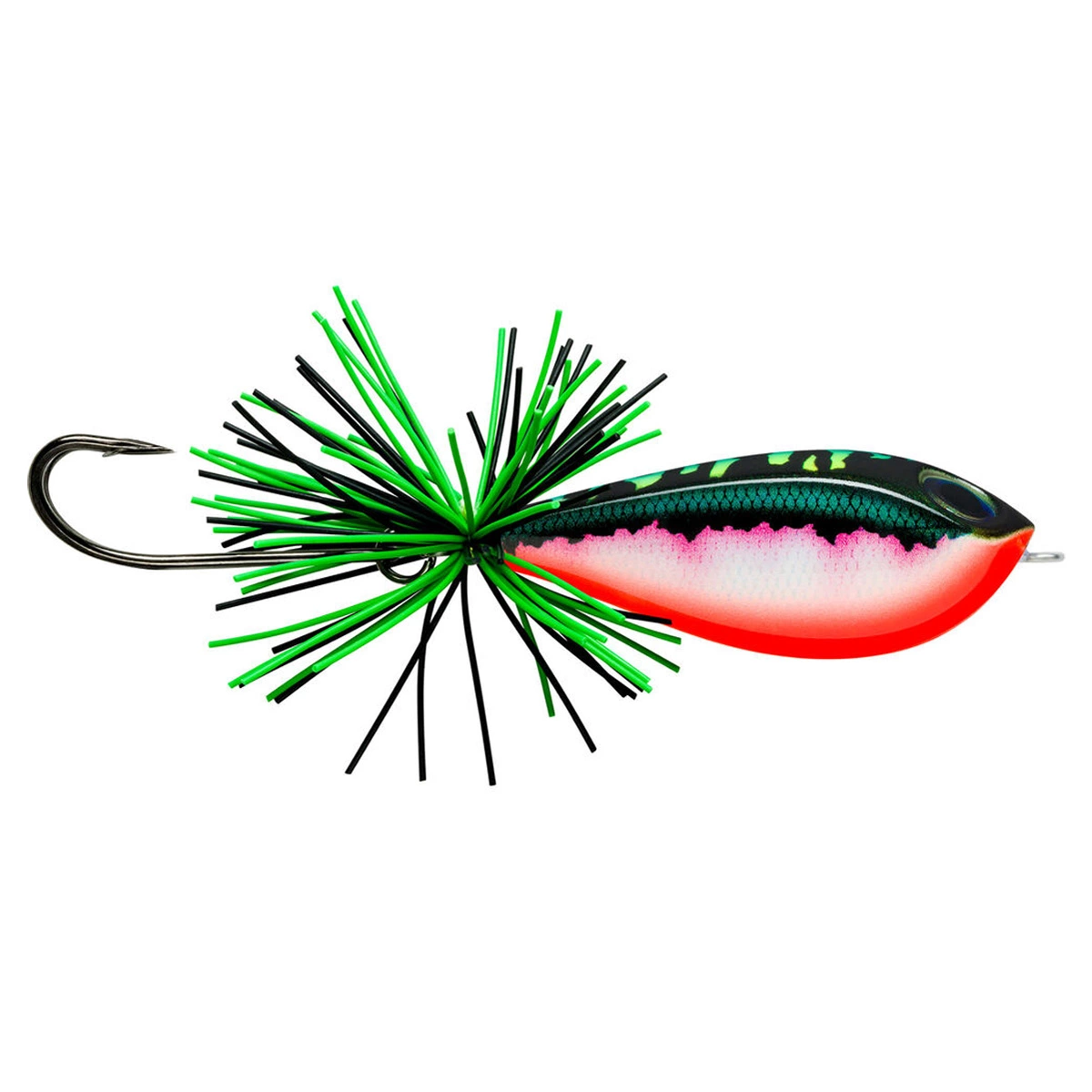 Originating in South East Asia for the snakehead market the Jumping Frog style lure is gaining popularity amongst in Australia for or predatory fish. Featuring a solid balsa body coated in a strong copolymer shell, wire-through technology and heavy-duty premium VMC double hook. The BX Skitter Frog has been built to withstand the damage caused by larger predators. Finished off in typical Rapala style the BX Skitter Frog comes ni a wide range of fish catching colours and features a thick cool ur matched rubber skirt to help with action and snag resistance.
