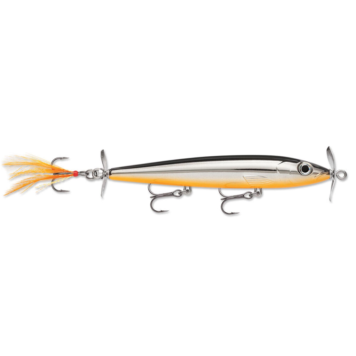 Stainless Steel Props create X-size noise and splash, churning, spitting and gurgling with the slightest tug. Whether you’re fishing a snap and pause, straight or shredding retrieve, the counter-rotating blades ensure a straight track back to the boat. Tail drops down during pause allowing better hooks up. X-Rap finish with internal laser-etched scales and holographic foil create an impressive flash. Internal long-cast mechanism lets you cast into the most timid fish from far away, without spooking them with your boat. VMC® black nickel hooks all around with flash feather teaser tail on the stern. Hand-tuned and tank-tested to run straight and true right out of the box.