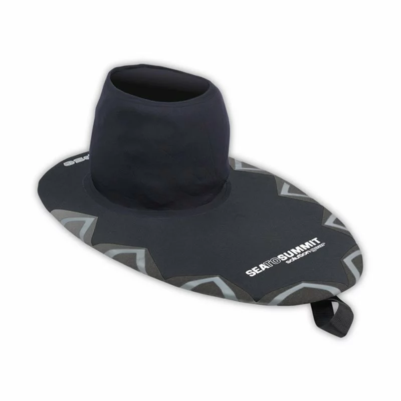 Sea to Summit Eclipse Large Sprayskirt Cover will suit fibreglass and plastic kayaks. The 4mm pad neoprene makes for an ultra strong and durable skirt, ideal for touring or intermediate whitewater use. The pull tag is sewn on, making it easy to roll off your cockpit, reducing the wear and tear on your skirt. The Plastisol bubble grip provides an awesome seal and reduces the chance of implosion of your skirt.