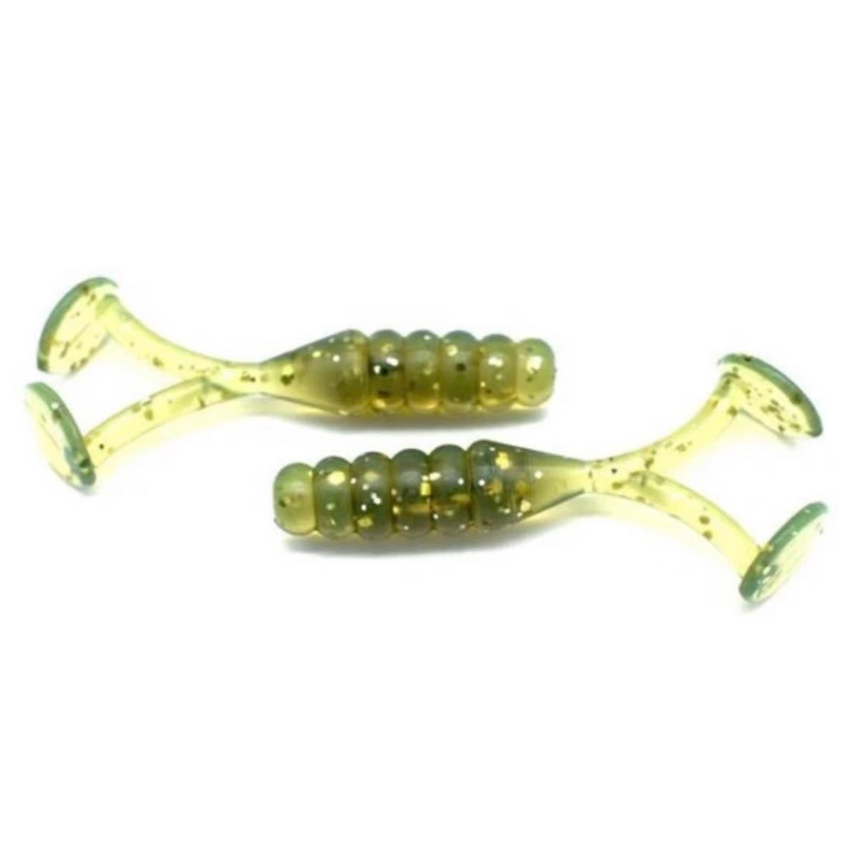 The 2 inch paddletails have an absolutely fantastic flickering action through the water to attract anything that comes near it. Great to use weightless as a topwater frog, or throw some weight on it and use it like a normal grub plastic.